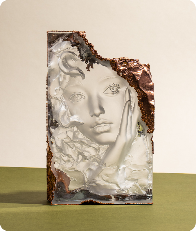 Sebenarnya, wajar jika karya seni kaca mengandung gelembung. Hal ini disebabkan oleh penggunaan teknik pengecoran lilin yang hilang, yang secara alami menghasilkan adanya gelembung di dalam potongan. Cara cahaya dibiaskan melalui gelembung internal ini menunjukkan pesona unik dari bahan kaca. Ini dengan indah menggambarkan bahwa kaca benar-benar berfungsi sebagai wadah cahaya.