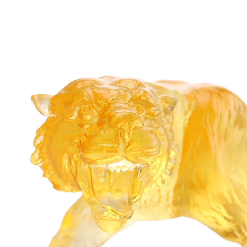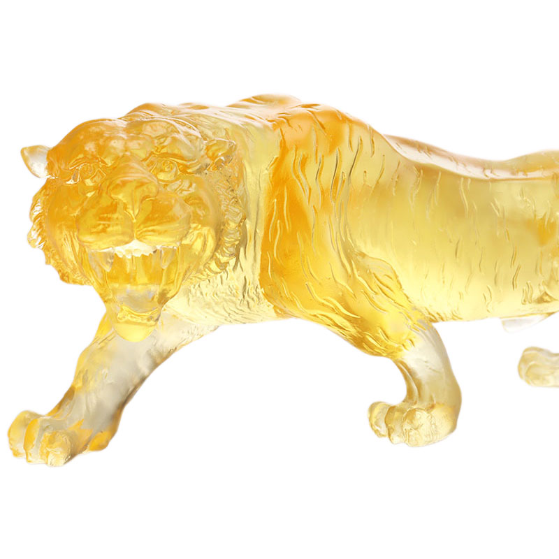 Rumah / Produk / Ornamen Kaca Dekorasi Kristal / Ornamen Patung Kaca Kristal Hewan / Ornamen harimau glasir berwarna emas