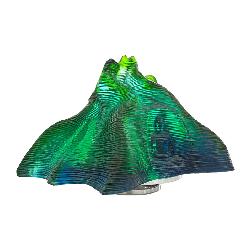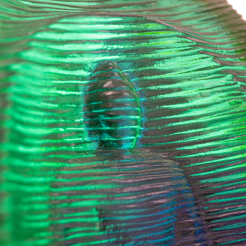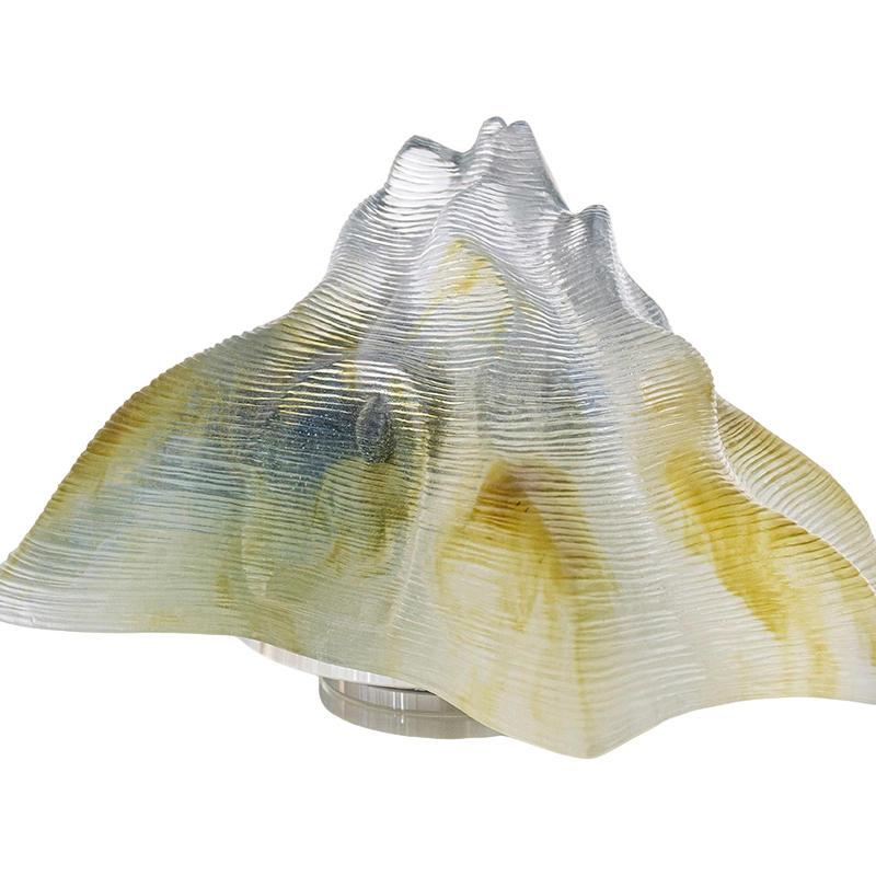 Sebenarnya, wajar jika karya seni kaca mengandung gelembung. Hal ini disebabkan oleh penggunaan teknik pengecoran lilin yang hilang, yang secara alami menghasilkan adanya gelembung di dalam potongan. Cara cahaya dibiaskan melalui gelembung internal ini menunjukkan pesona unik dari bahan kaca. Ini dengan indah menggambarkan bahwa kaca benar-benar berfungsi sebagai wadah cahaya.